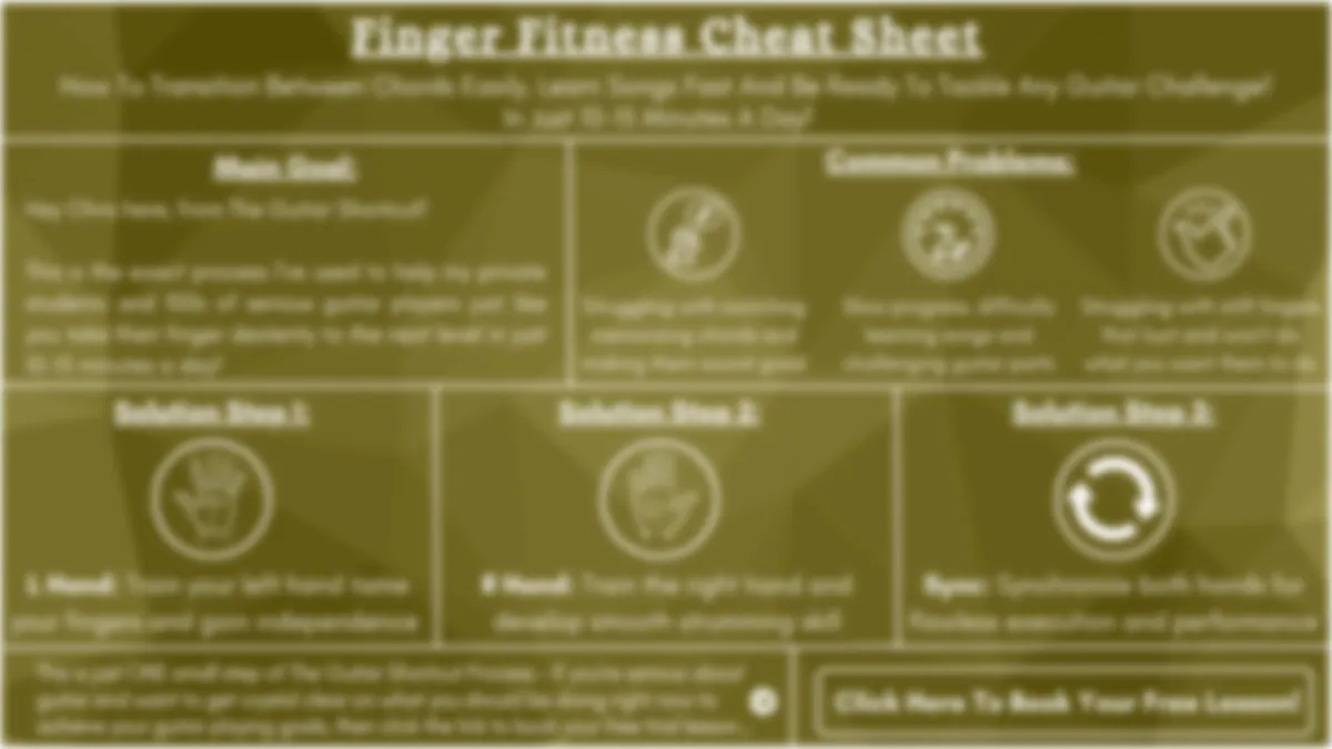DISCLAIMER: The results stated above are my student's personal results... I’m using these references for example purposes only. Please understand our results are not typical. We are not implying you'll duplicate them (or do anything for that matter). The average person who gets any "how to" information gets little to no results. Your results will vary and depend on many factors… Including but not limited to your background, experience, and work ethic. Learning guitar requires consistent effort and action. If you're not willing to accept that, please DO NOT opt-in for training..